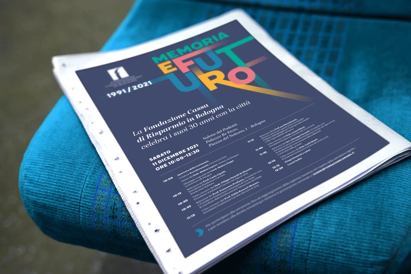 In occasione del 30° anniversario di Fondazione Carisbo abbiamo realizzato l’immagine coordinata comprendente: save the date, invito, job title, logo animation, totem informativi, desktop di accoglienza, slide di presentazione, pagina ADV e libretto.