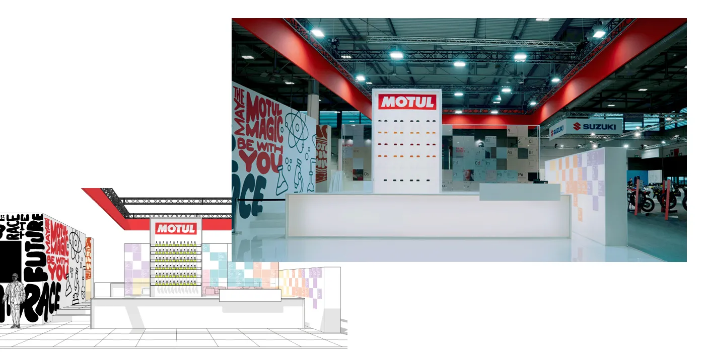 Grazie a un concept studiato nei minimi dettagli, lo spazio Motul ha incarnato alla perfezione l’anima racing e innovativa del marchio, attirando l’attenzione di fan e professionisti del settore.