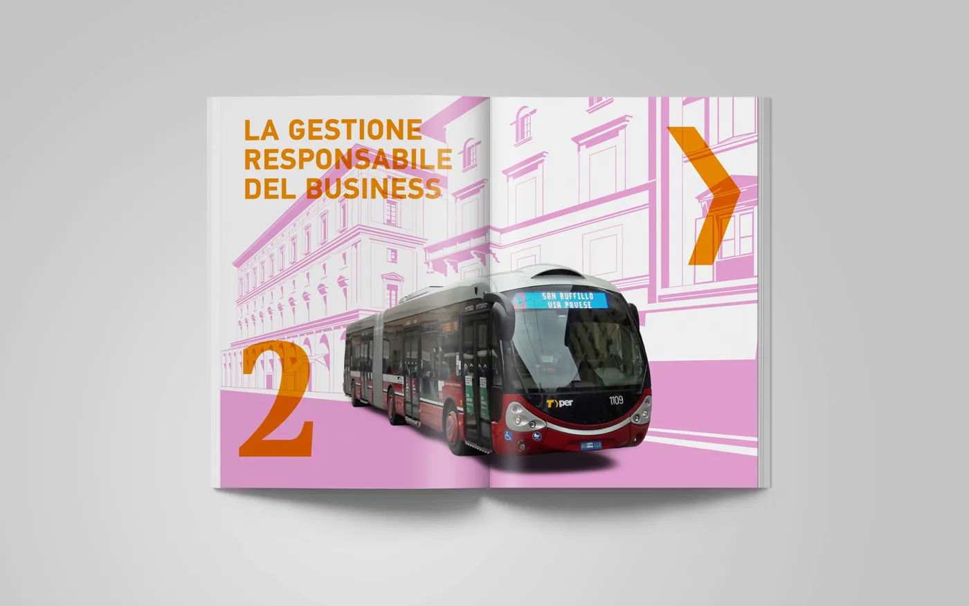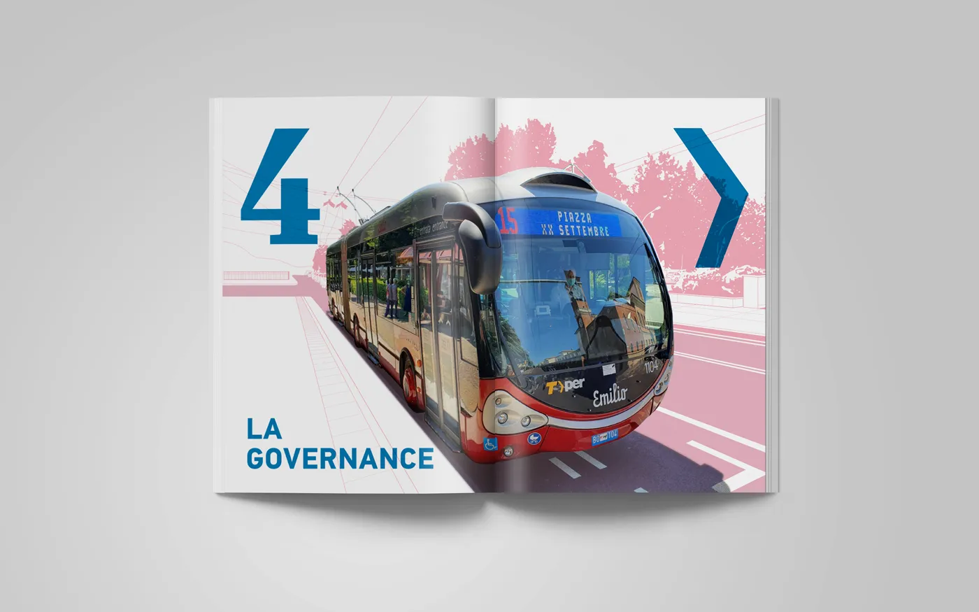 Per i Bilanci Civilistico e di Sostenibilità di Tper - l'azienda dei trasporti pubblici dell'Emilia-Romagna - abbiamo proposto un trattamento grafico che sottolinea la natura tecnica, ingegneristica, dell'attività. I mezzi e il contesto in cui si espleta il servizio sono infatti rappresentati come un disegno tecnico, con linee sottili e attraverso le geometrie essenziali per descrivere i soggetti.