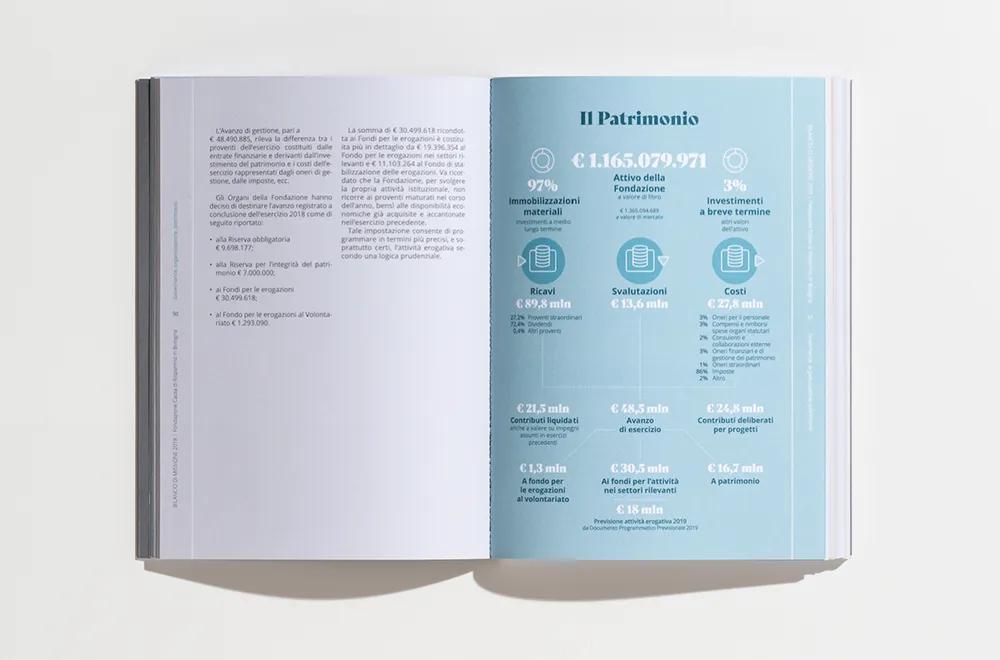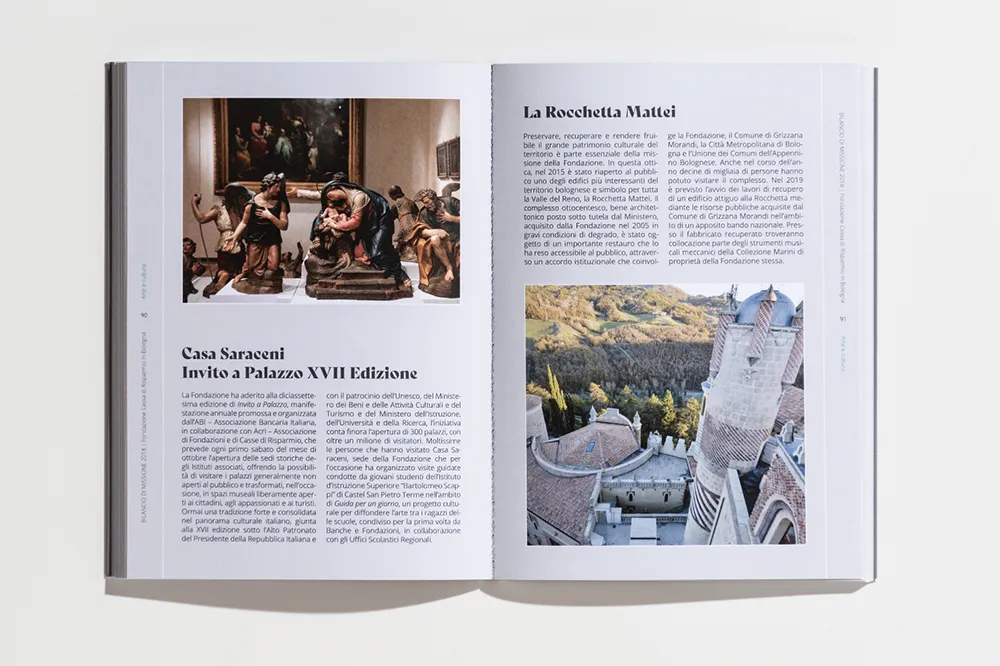 Bilancio di Missione 2018 Fondazione Carisbo Attività grafica - ADV Settore istituzionale Firmata la realizzazione del nuovo Bilancio di Missione 2018 della Fondazione Cassa di Risparmio di Bologna.