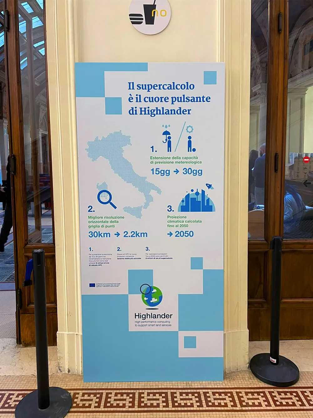 Il 26 gennaio 2023, presso la Sala Borsa Auditorium E. Biagi di Bologna, si è tenuta la Conferenza finale di Highlander, progetto incentrato sulla riduzione dei rischi associati ai cambiamenti climatici sul territorio italiano attraverso il supercalcolo, elaborando dati per ottenere previsioni climatiche accurate e una gestione più intelligente e sostenibile delle risorse naturali e del territorio.