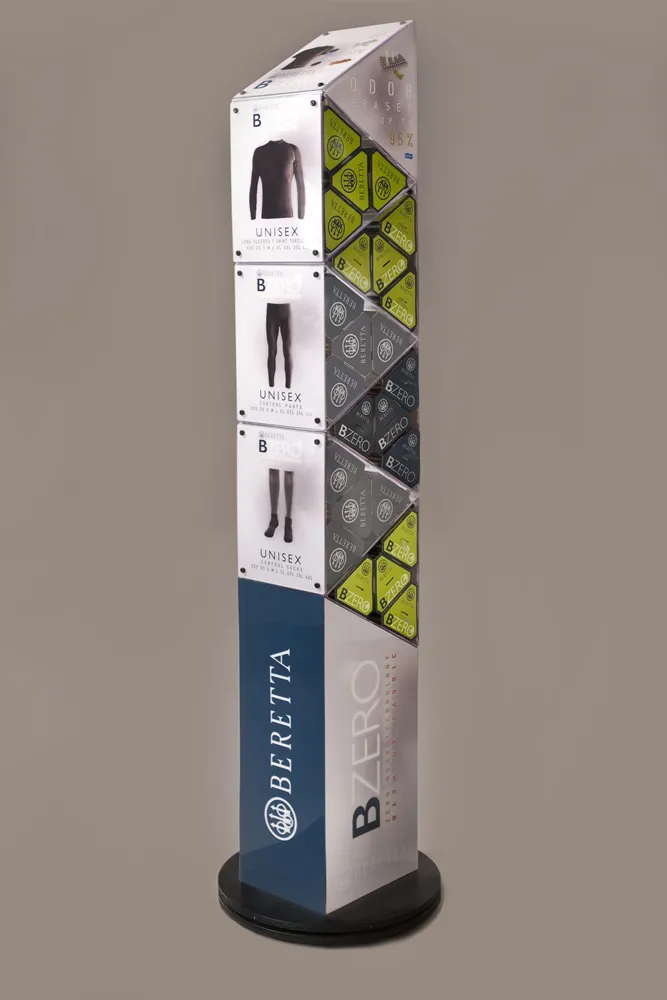 Espositore e Pack per BZERO Beretta Apparel Attività grafica - ADV Settore sportswear D-Sign realizza i pack Fall-Winter/ Spring-Summer e l'espositore per BZERO, la nuova linea di abbigliamento intimo tecnico Beretta.