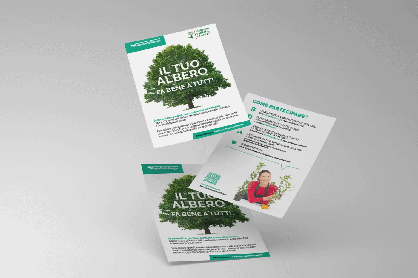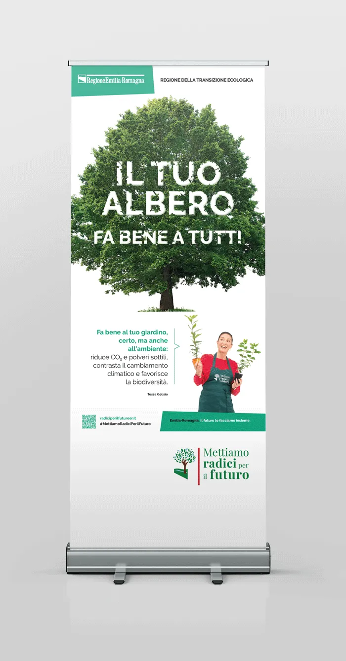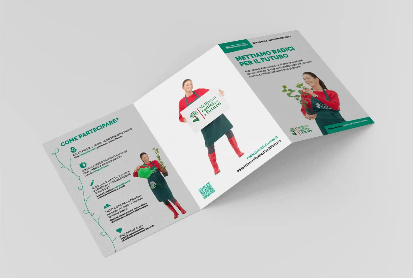 In occasione del recente evento di rilancio della campagna della Regione Emilia-Romagna "Mettiamo radici per il futuro" tenutosi a Boretto, D-sign ha realizzato il pieghevole, il roll-up e il flyer, oltre alla gestione delle dirette live sui canali social.