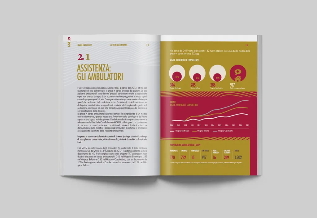 E' tempo di bilanci e per il nuovo Bilancio di Missione 2019 della Fondazione Hospice abbiamo realizzato una nuova grafica con nuovi colori per raccontare ancora meglio tutto quello che è stato fatto dalla Fondazione nell'ultimo anno: le attività di assistenza e la formazione, la ricerca e la divulgazione, le entrate, le uscite e la raccolta fondi.