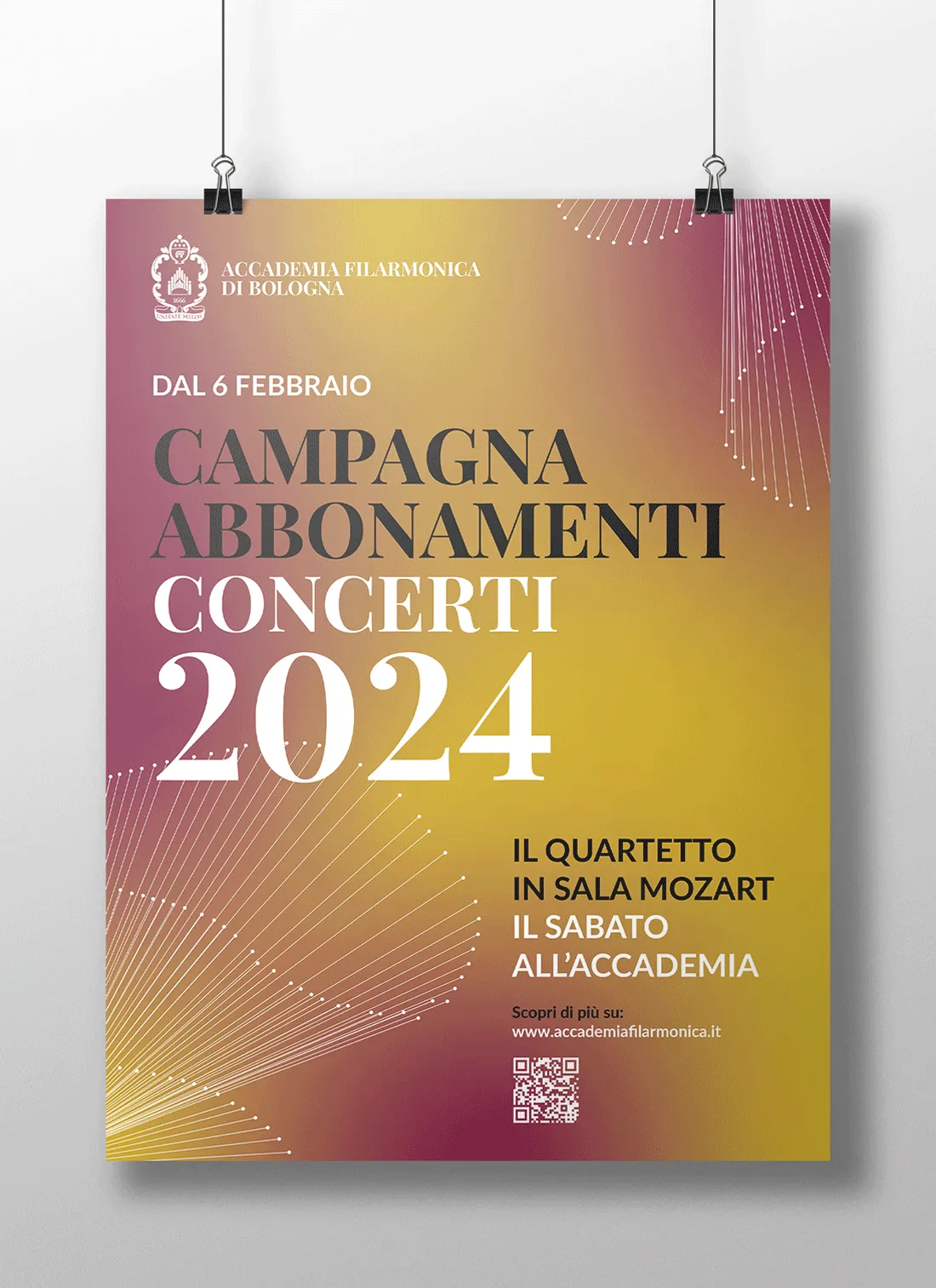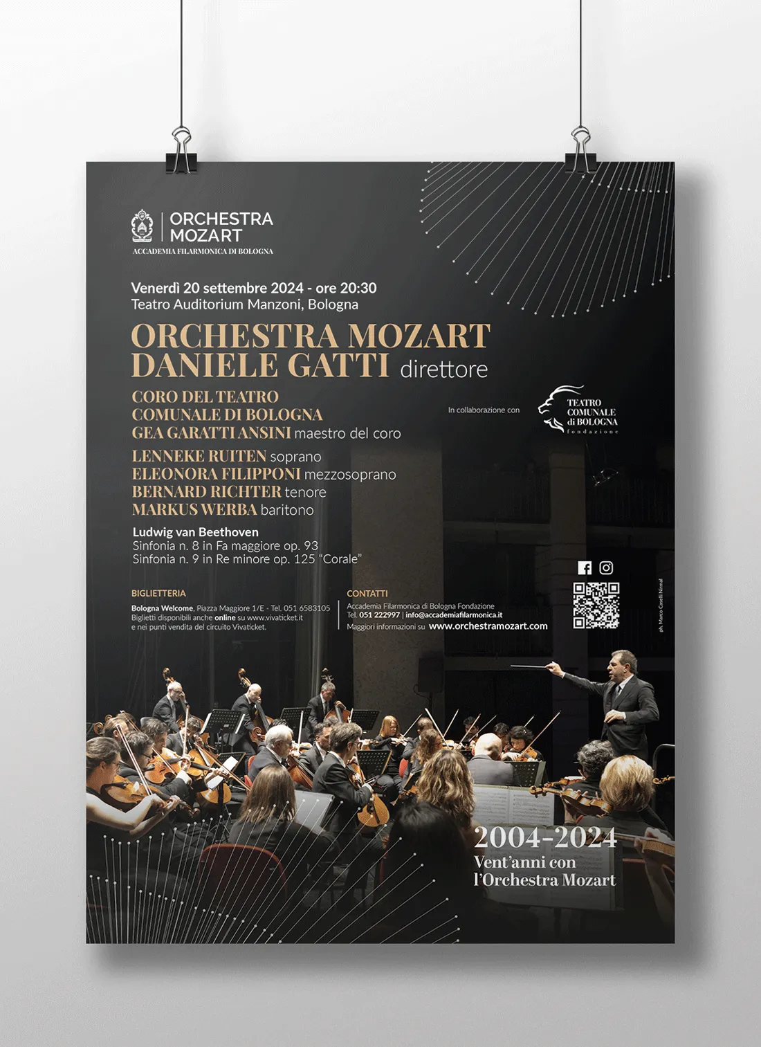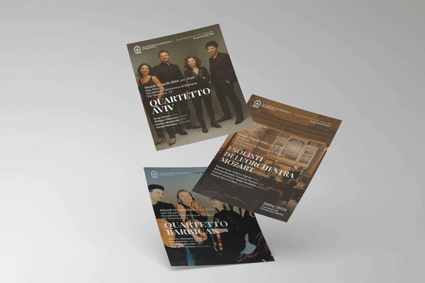 Continua la nostra collaborazione con l'Accademia Filarmonica di Bologna e l'Orchestra Mozart per sviluppare la loro immagine grafica e identità visiva. Partendo dai loro valori e missione, abbiamo creato un sistema di branding coerente ed elegante, applicato a tutti i materiali promozionali, dai manifesti ai programmi di sala e formati web. Il risultato è una veste grafica raffinata ed evocativa che trasmette l'eccellenza artistica e culturale di queste prestigiose istituzioni al loro pubblico.