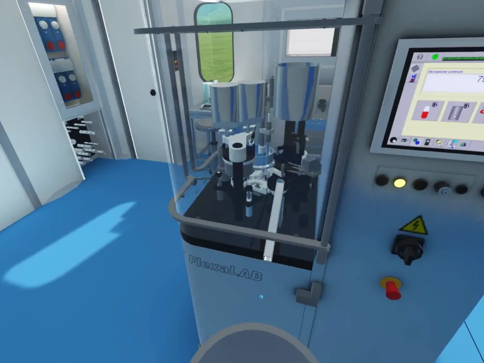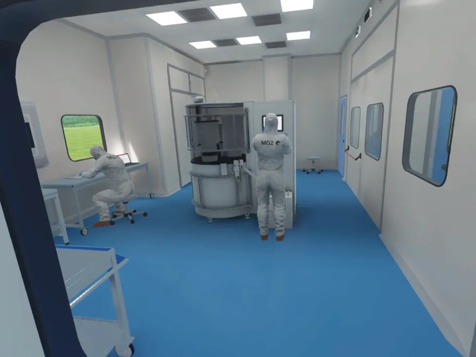Per rispondere a questa esigenza, abbiamo realizzato un’esperienza in Realtà Virtuale che permette alle persone di visitare il laboratorio e testarne le funzionalità in prima persona anche da luoghi distanti. In questa demo, l’utente può muoversi liberamente in una delle stanze della Pharma Zone, oltre che interagire con una delle macchine più importanti del catalogo MG2.