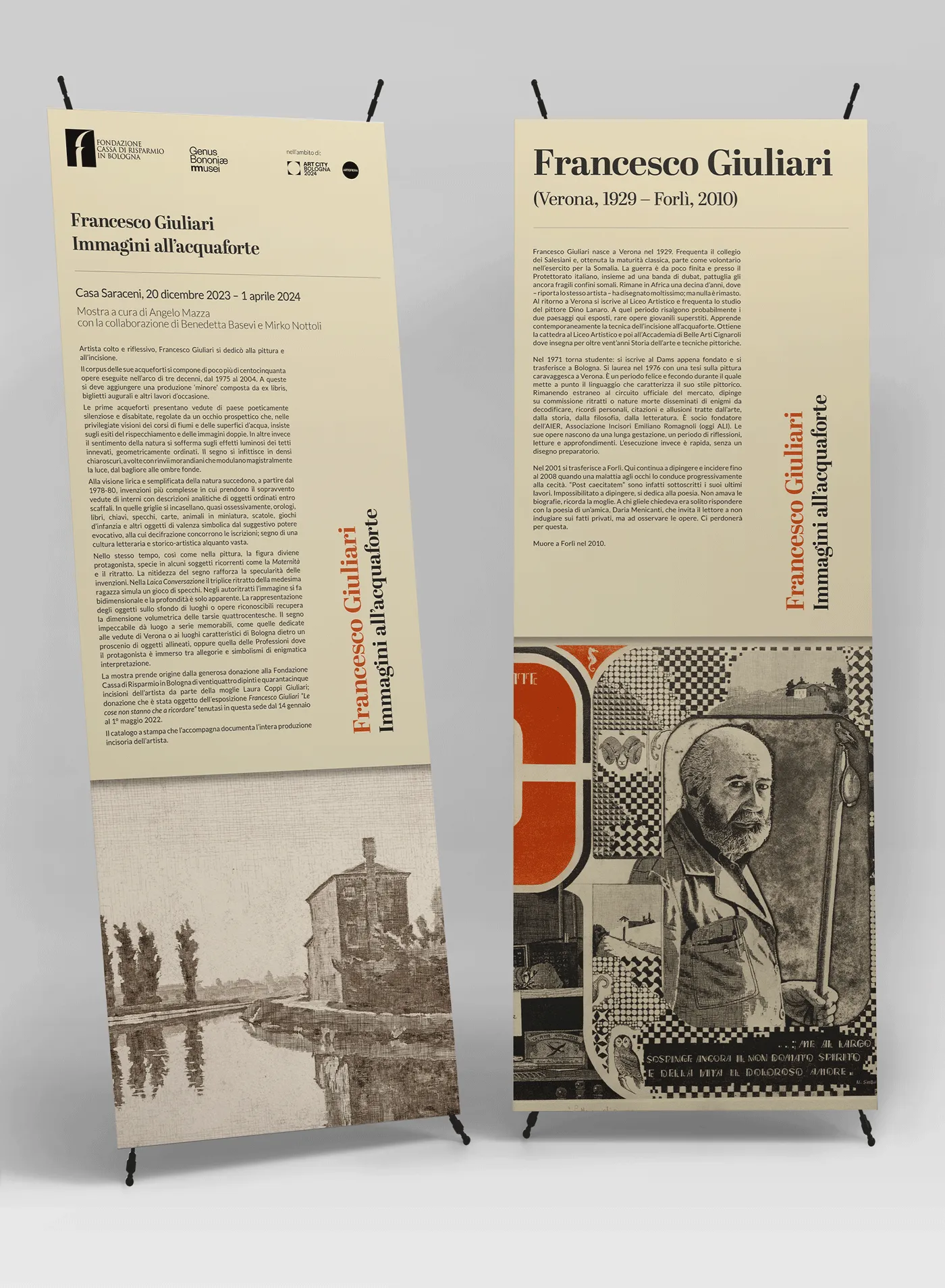 Abbiamo realizzato pieghevoli, stendardi e pannelli informativi per la nuova mostra della Fondazione Cassa di Risparmio in Bologna dedicata a Francesco Giuliari, 'Immagini all'acquaforte'. La mostra presenta oltre centocinquanta opere eseguite tra il 1975 e il 2004. Potrete visitarla a Casa Saraceni fino al 1 aprile 2024.