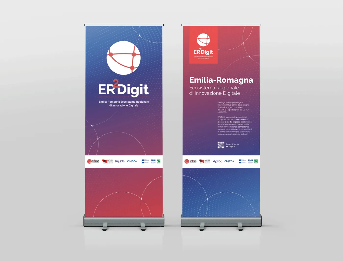 Dopo aver vinto la gara promossa da ArtER per la strategia di comunicazione e disseminazione del progetto ER2Digit, abbiamo creato l'immagine coordinata, sviluppato il portale web er2digit.it e ora gestiamo i social network del progetto. ER2Digit rappresenta un ecosistema regionale di innovazione digitale per la pubblica amministrazione e le piccole e medie imprese dell'Emilia-Romagna.