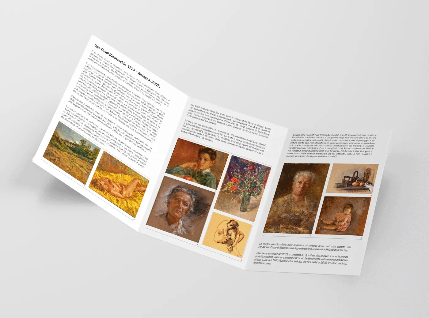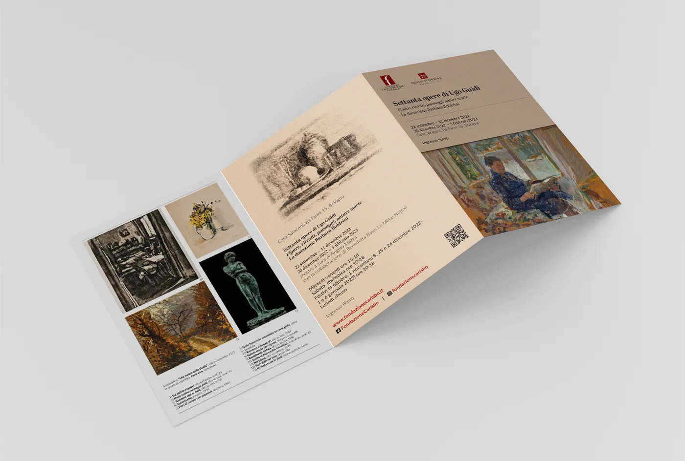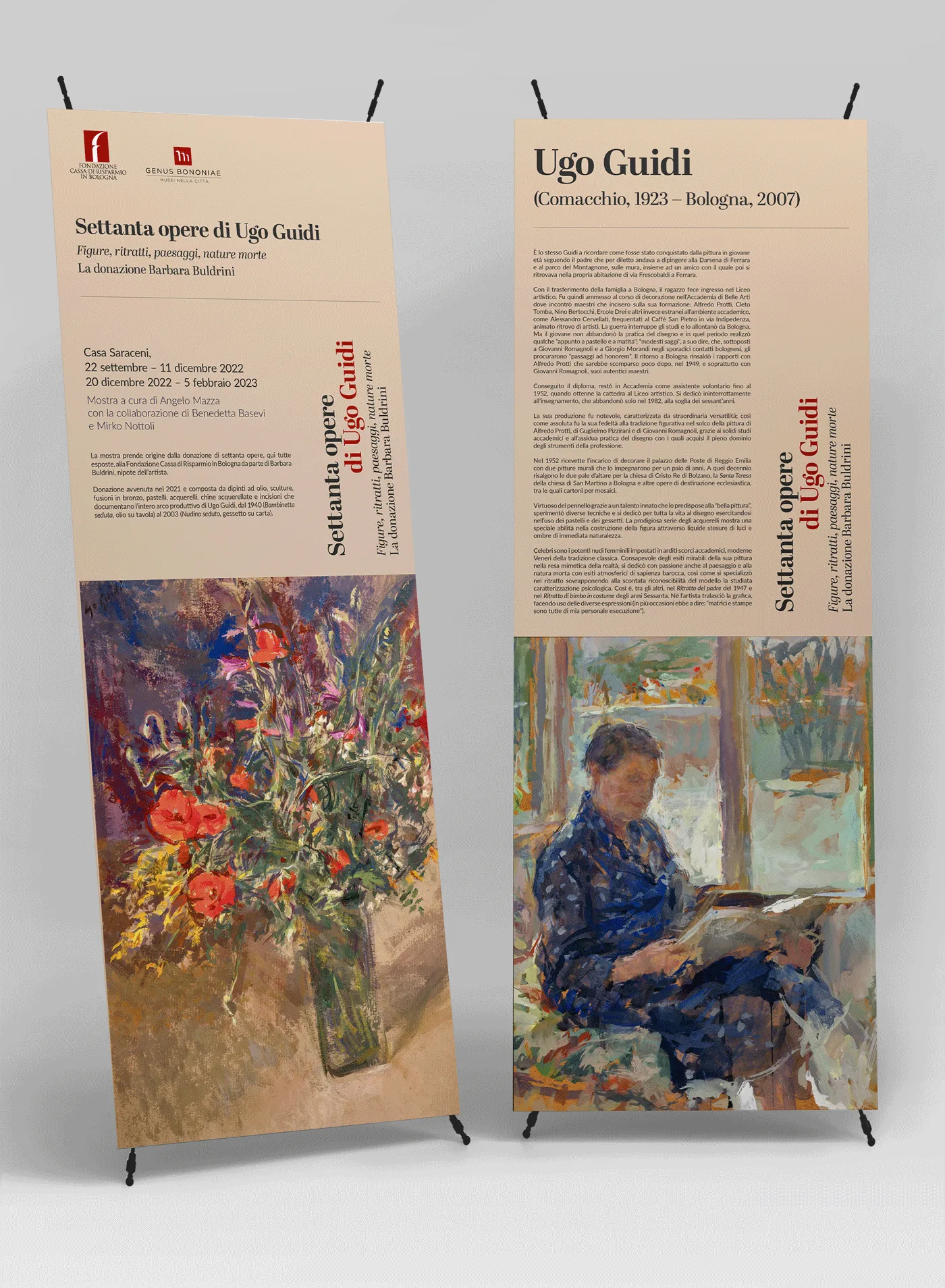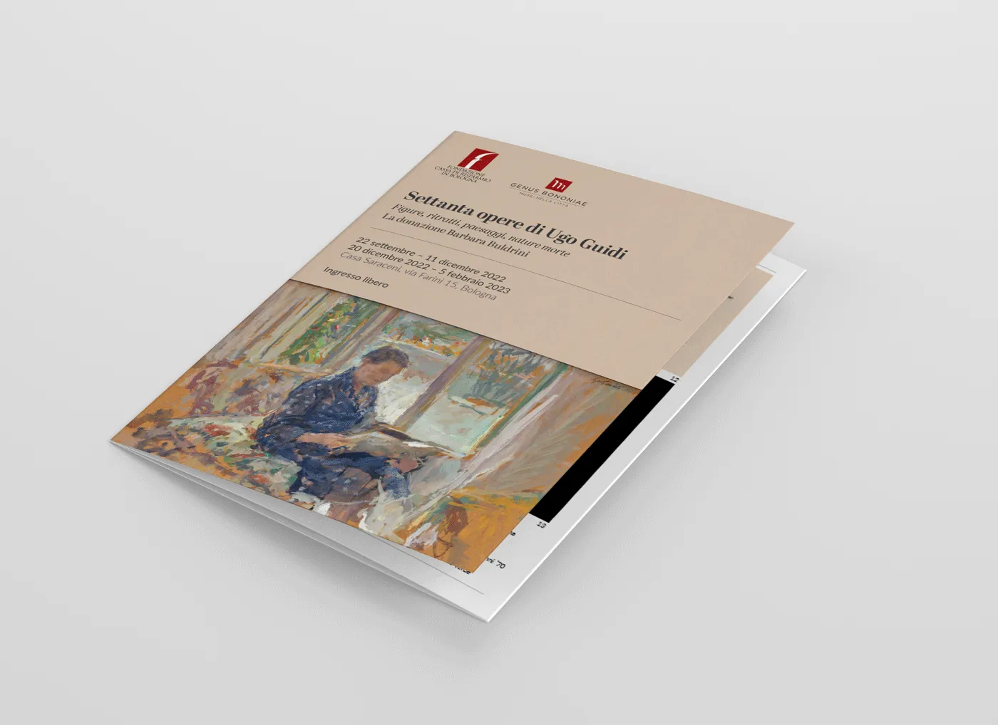 Per Fondazione Carisbo abbiamo realizzato pieghevole, stendardo e pannelli informativi della mostra ”Settanta Opere di Ugo Guidi", realizzata grazie alla donazione di Barbara Buldrini alla Fondazione e inaugurata a Casa Saraceni il 22 Settembre 2022 (in esposizione fino al 5 Febbraio).
