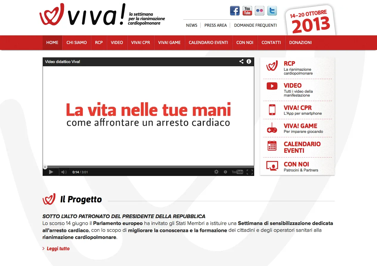 Si è concluso con grande successo il progetto “VIVA! La settimana per la rianimazione polmonare” promosso da IRC Italian Resuscitation Council, il gruppo che dal 1994 si occupa di diffondere la conoscenza e migliorare la formazione di cittadini e operatori sanitari alla rianimazione cardiopolmonare e patrocinata dalle maggiori istituzioni pubbliche e private. D-Sign, con Studio Evil e Gadoev ha contribuito alla diffusione del messaggio e al sostegno dell’iniziativa per cui sono state create una serie di attività: